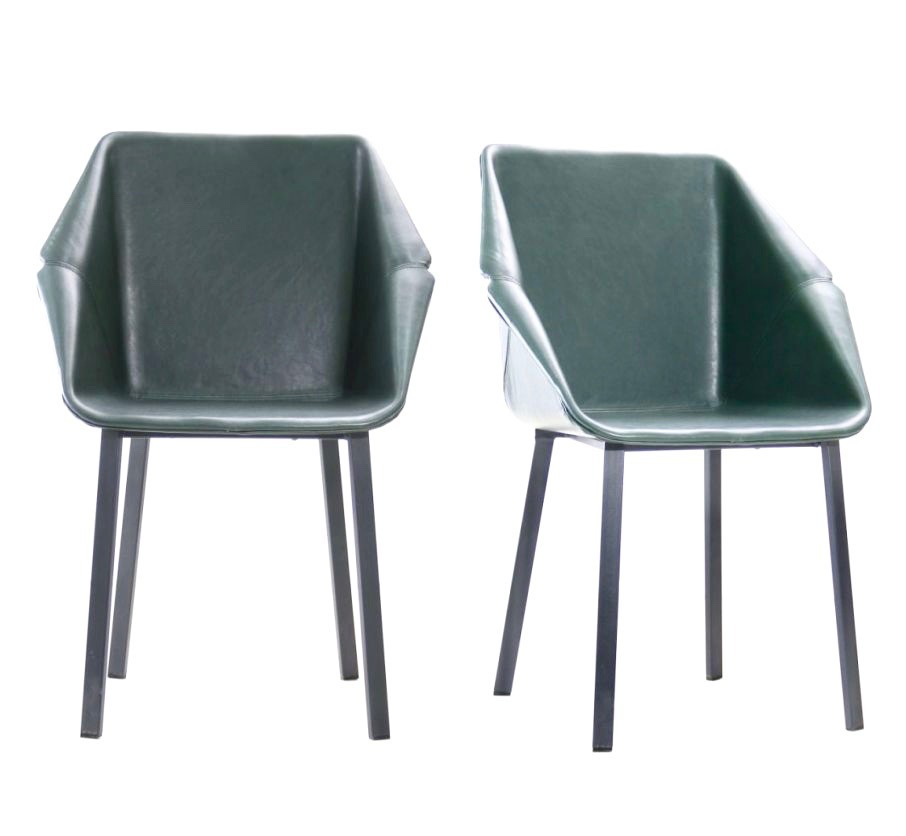Diese edlen Stühle mit ihrem tiefgrünen Farbton verleihen einen Hauch anspruchsvoller Originalität und sind ideal, um einem Interieur Energie zu verleihen und gleichzeitig elegant zu bleiben. Ihre moderne, geometrische Silhouette mit leicht eckigen Linien verleiht diesen Stühlen einen ausgeprägten zeitgenössischen Stil. Die umlaufenden Armlehnen garantieren höchsten Komfort, perfekt für ausgedehnte Momente der Entspannung. Die grosszügige Sitzfläche bietet hervorragenden Halt und ein sofortiges Wohlgefühl. Die schwarzen Metallbeine sorgen für Stabilität und Kontrast und betonen die Eleganz der Stühle. Dieses Modell vereint Ästhetik, Haltbarkeit und Alltagskomfort. Es passt gleichermaßen gut in ein Designer-Wohnzimmer, ein edles Büro oder ein elegantes Esszimmer. Als wahre Mittelpunkte verleihen diese Stühle Räumen Charakter und Vornehmheit.