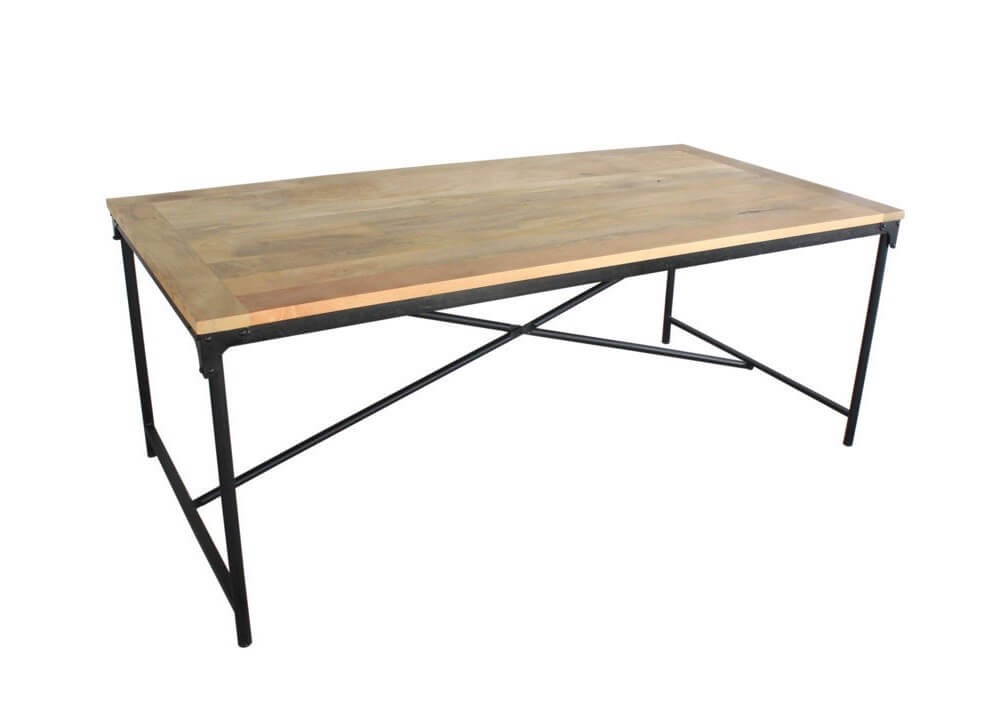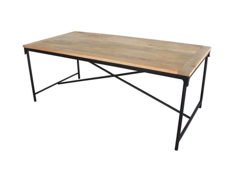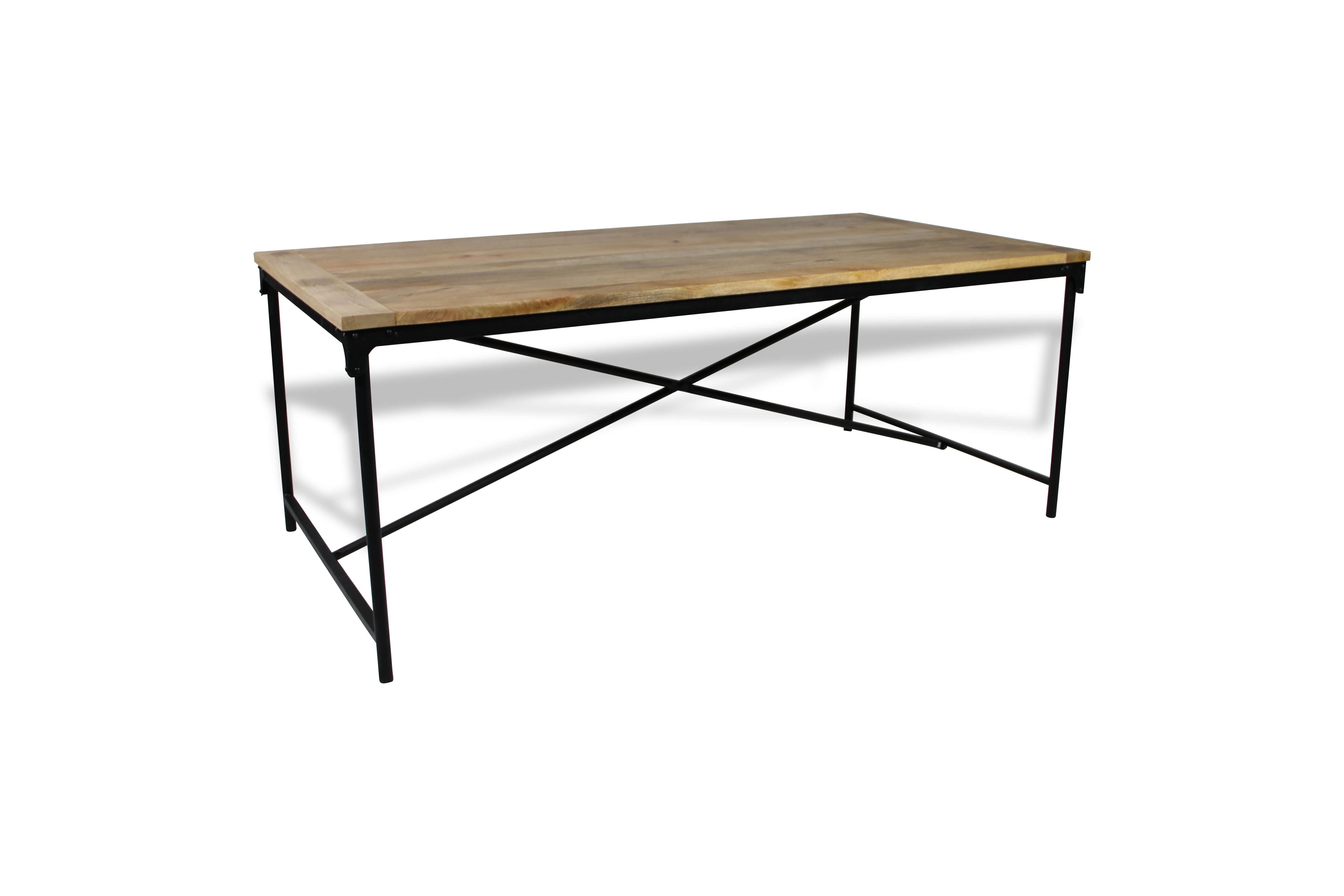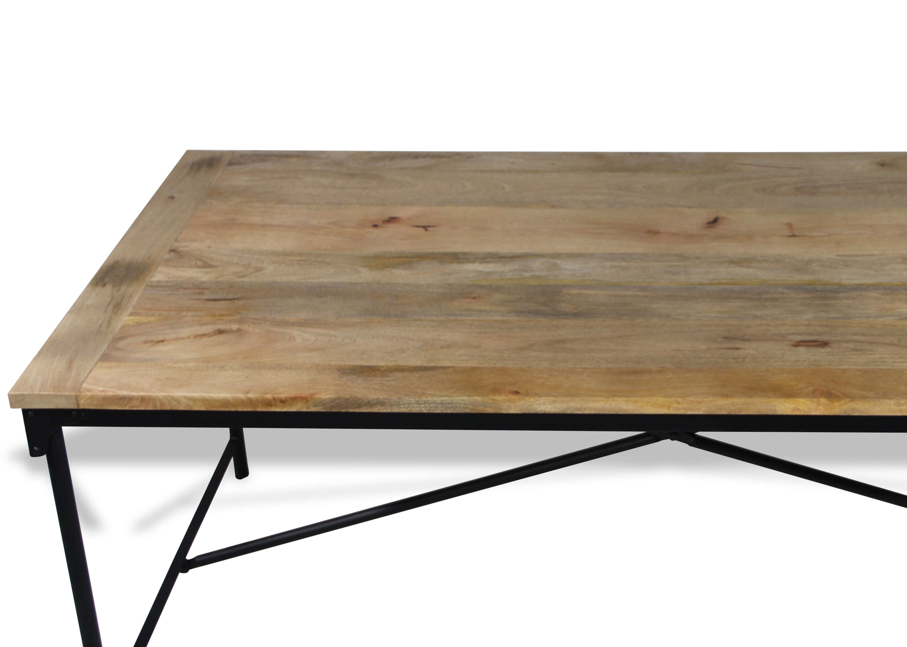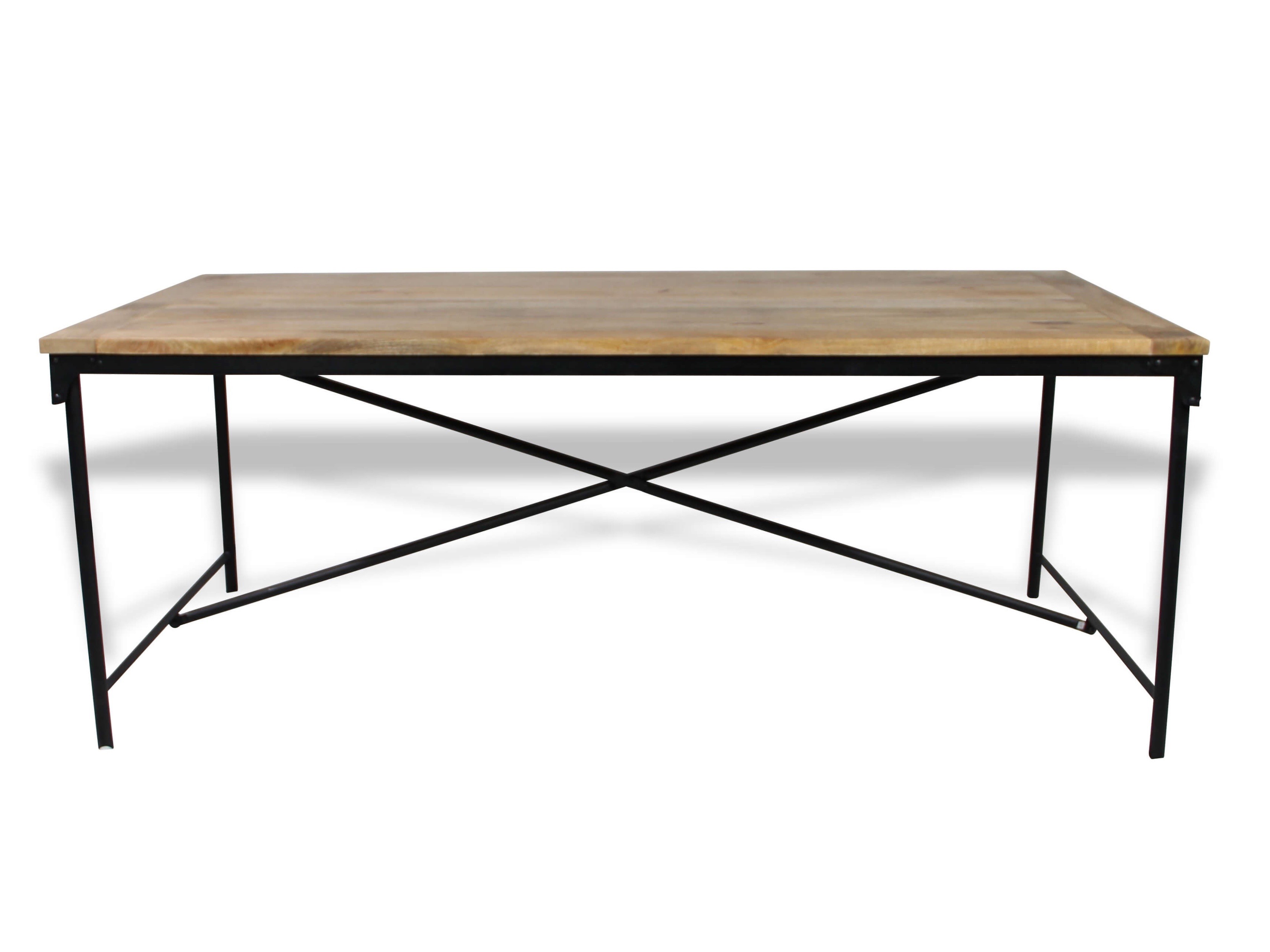 Dieser Esstisch kombiniert auf elegante Weise den natürlichen Charme von massivem Mango Holz und die Modernität einer schlanken Metallstruktur. Seine Holzplatte weist herrliche Nuancen und eine authentische Maserung auf und verleiht Ihrem Esszimmer Wärme und Charakter. Die schlanke, schwarze Metallstruktur, verstärkt durch gekreuzte Querstreben, sorgt für hervorragende Stabilität und bietet gleichzeitig ein leichtes und luftiges Design. Dank seiner großzügigen Abmessungen bietet er bequem Platz für mehrere Gäste zu geselligen Mahlzeiten. Sein schicker Industriestil passt perfekt in moderne, Loft- oder sogar rustikalere Innenräume. Die Qualität der Materialien garantiert dauerhafte Robustheit für den täglichen Gebrauch. Es lässt sich leicht mit Stühlen unterschiedlicher Stilrichtungen kombinieren und bietet große Gestaltungsfreiheit. Jede Mahlzeit wird zu einem Moment des Teilens, der durch diesen sowohl funktionalen als auch ästhetischen Tisch noch bereichert wird. Eine ideale Wahl, um Ihren Essbereich mit Raffinesse und Authentizität aufzuwerten.
