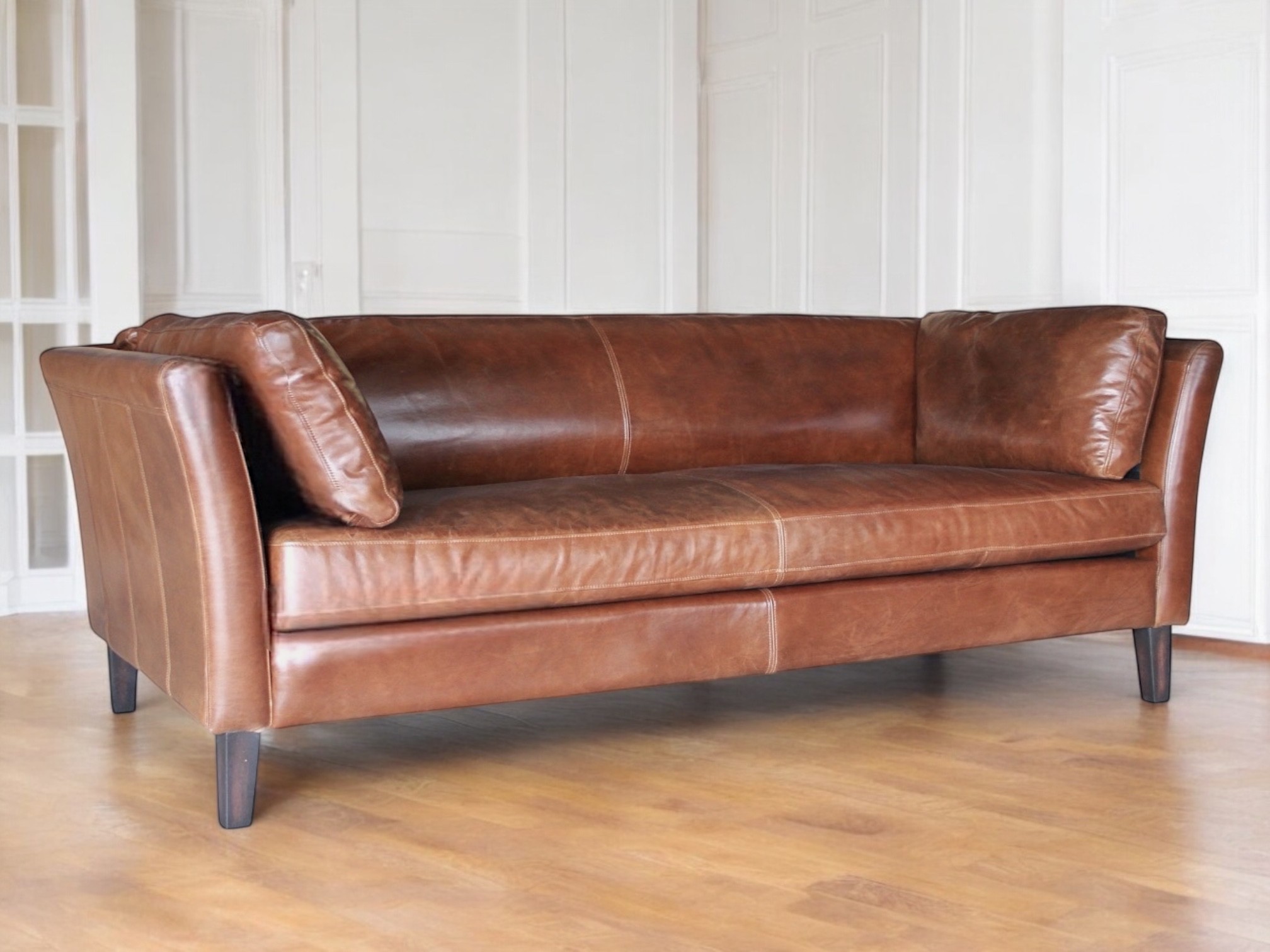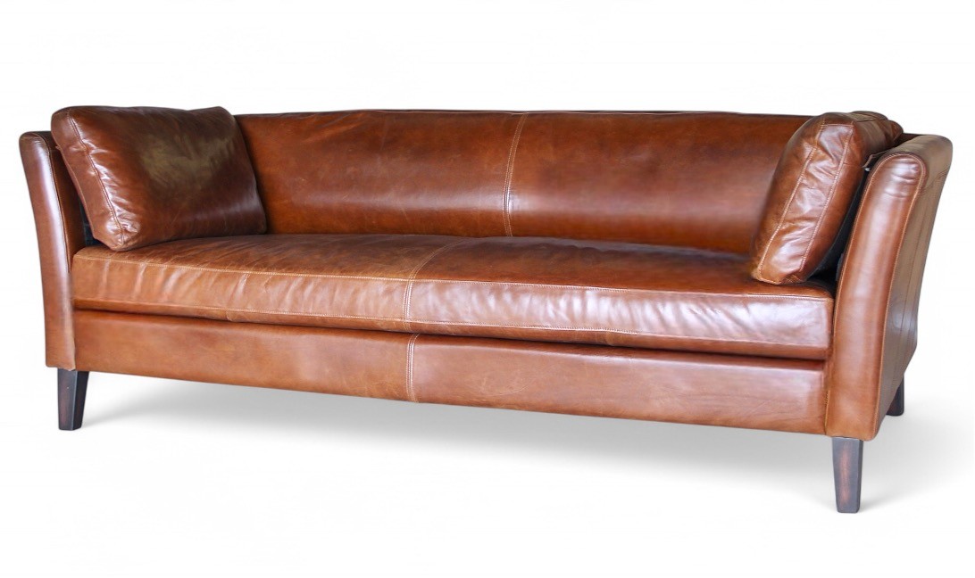 Das Dreisitzer-Sofa "Marty" in braunem Leder ist viel mehr als nur ein Möbelstück : es lädt zu Komfort und Geselligkeit ein. Es ist die Quintessenz warmer und eleganter Möbel.