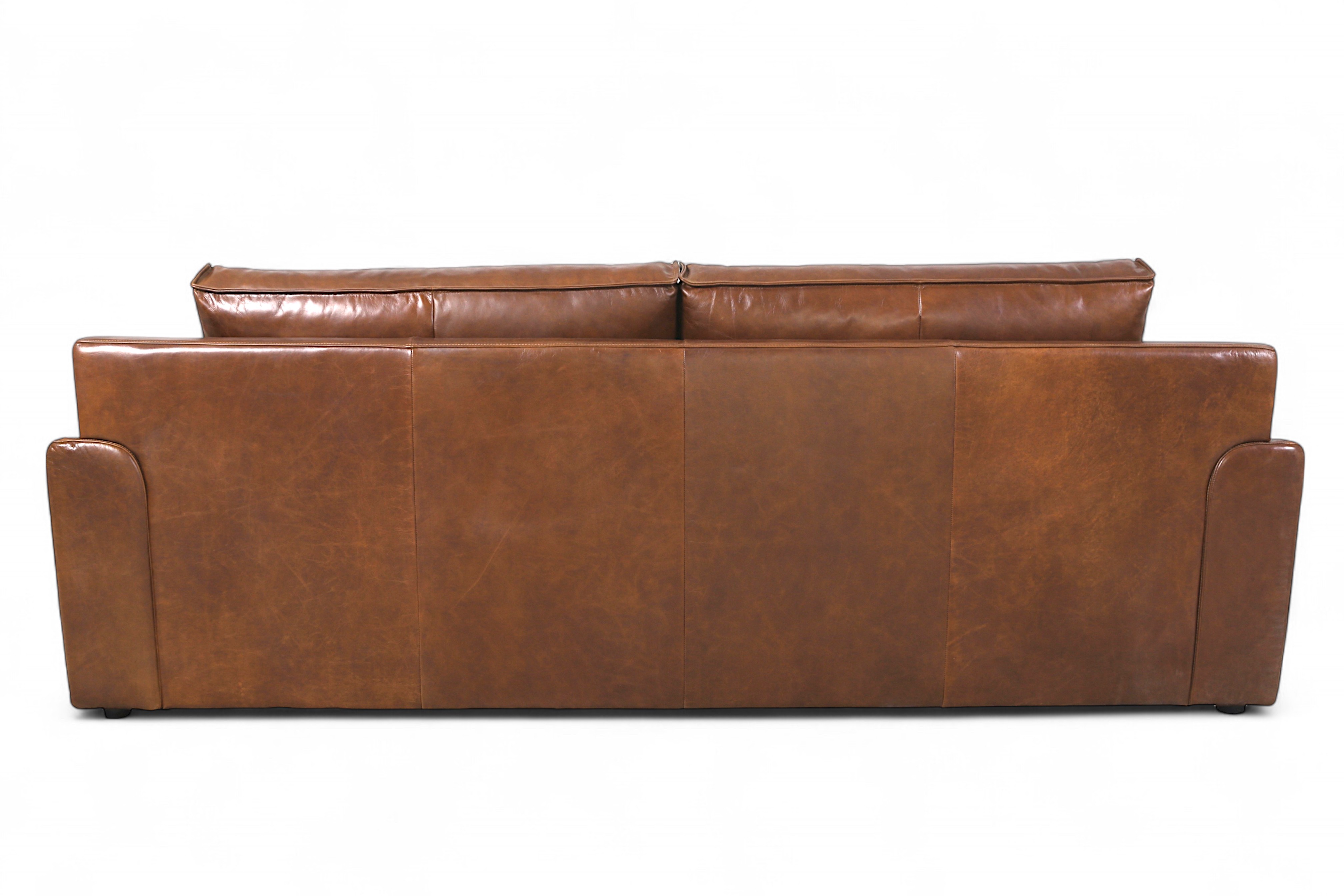 Das 3-Sitzer Sofa "Ralph" aus vollnarbigem argentinischem Rindsleder vereint Komfort und modernes Design. Die weiche Sitzfläche, die breiten Armlehnen und das patinierte Cognac-Leder verleihen ihm einen warmen und eleganten Stil. Die robuste Konstruktion und die sorgfältige Verarbeitung garantieren Langlebigkeit und Komfort im Alltag.