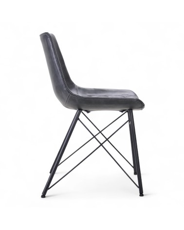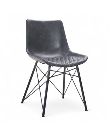 Cette chaise au design contemporain séduit par sa teinte gris anthracite qui apporte une élégance sobre et intemporelle, idéale pour des intérieurs modernes ou industriels. L’assise matelassée avec surpiqûres losangées offre un raffinement discret tout en garantissant un confort supérieur. La coque ergonomique épouse parfaitement la forme du corps, assurant un excellent soutien lors d’utilisations prolongées. Les pieds en métal noir, associés à une structure graphique en croisillons, confèrent à cette chaise une stabilité optimale et un style audacieux. Ce jeu de lignes apporte légèreté visuelle et modernité à l’ensemble. Adaptée aussi bien à un espace de repas qu’à un bureau design, cette chaise est une pièce polyvalente et élégante. Les finitions sont soigneusement travaillées, valorisant la qualité artisanale du cuir bycast. Cette chaise conjugue parfaitement esthétisme, confort et durabilité pour sublimer vos espaces.