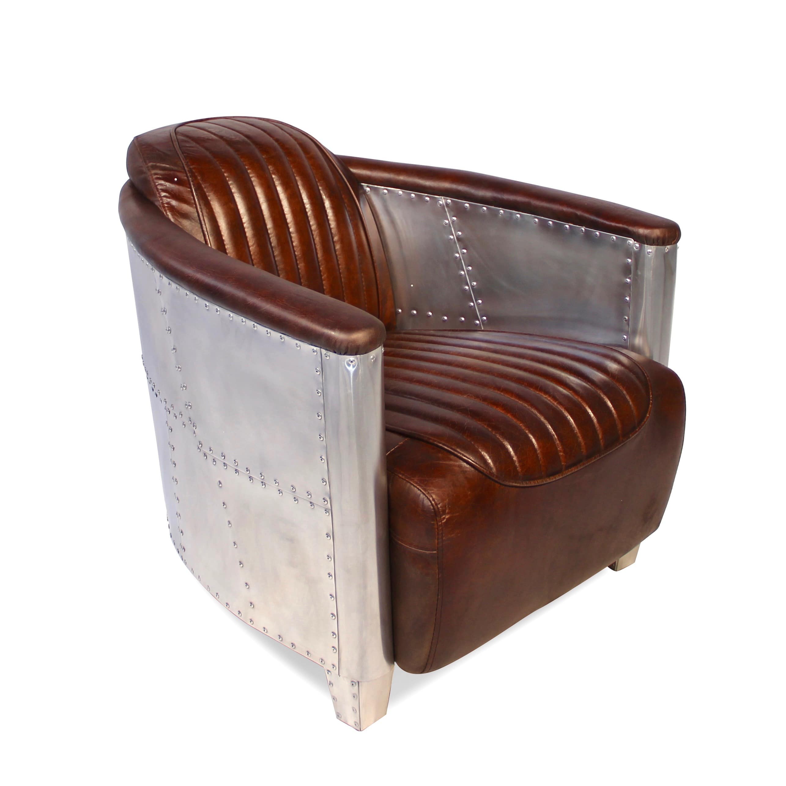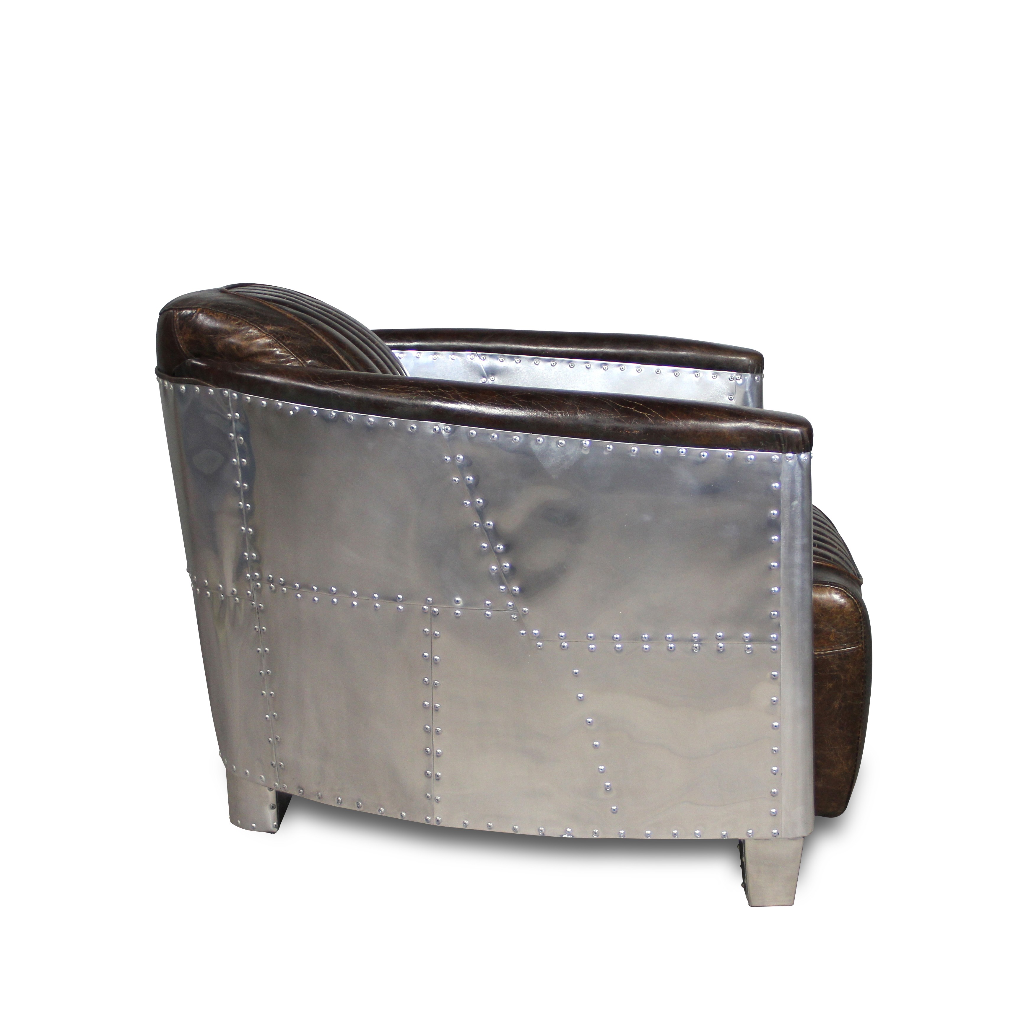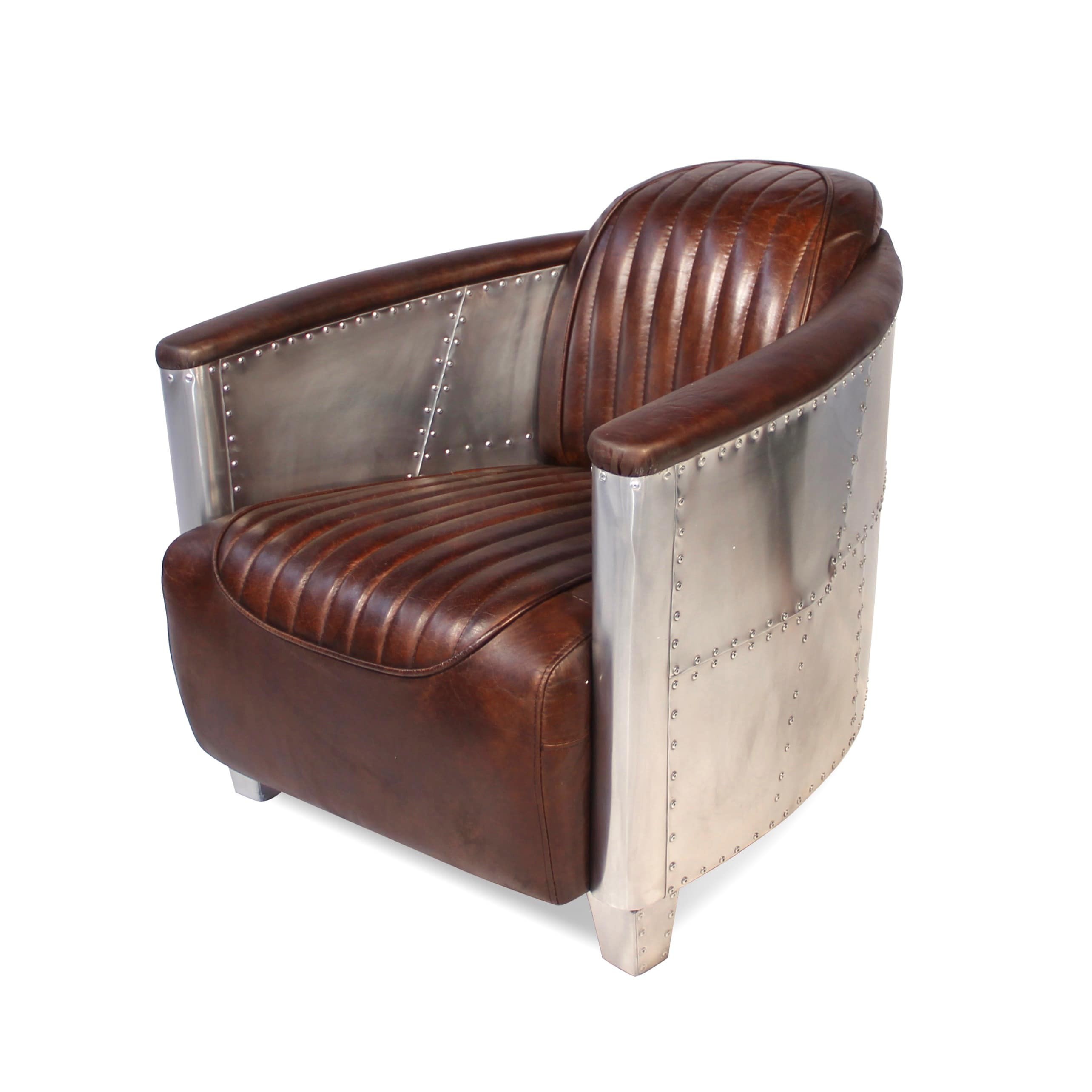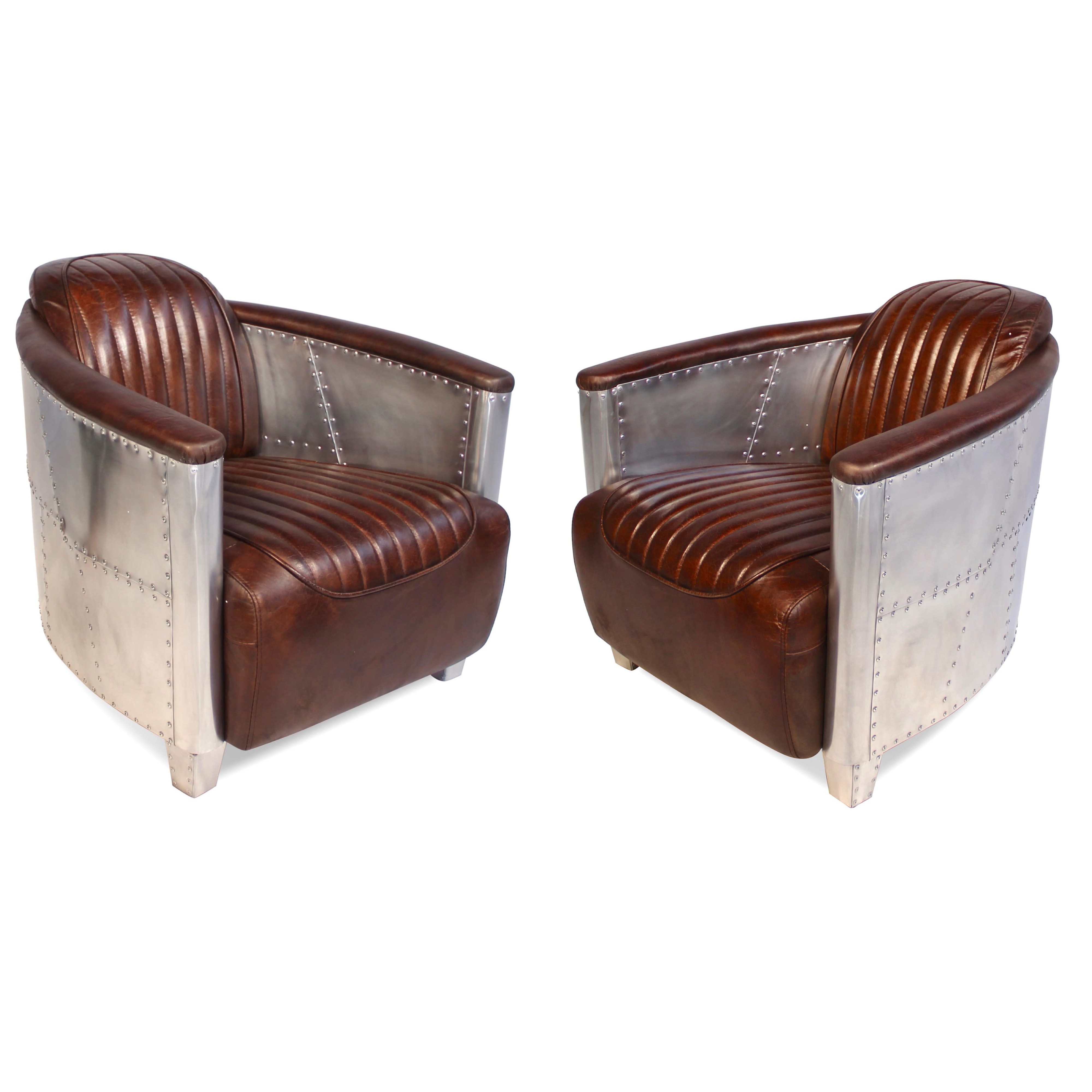 Ces 2 Fauteuils Aviateur "Mermoz" en cuir Marron Vintage et Aluminium Riveté seront magnifiques dans votre salon, dans un bureau, un bar ou un restaurant. Avec leur cuir vieilli et patiné, leurs plaques d'aluminium rivetés comme un avion, ils seront La Touche Design de Votre décoration intérieure.