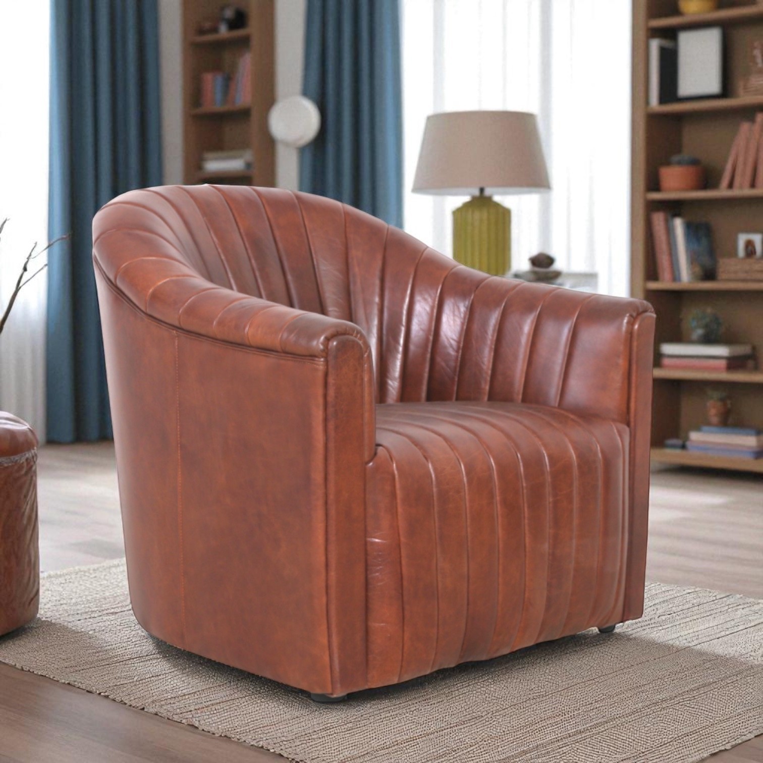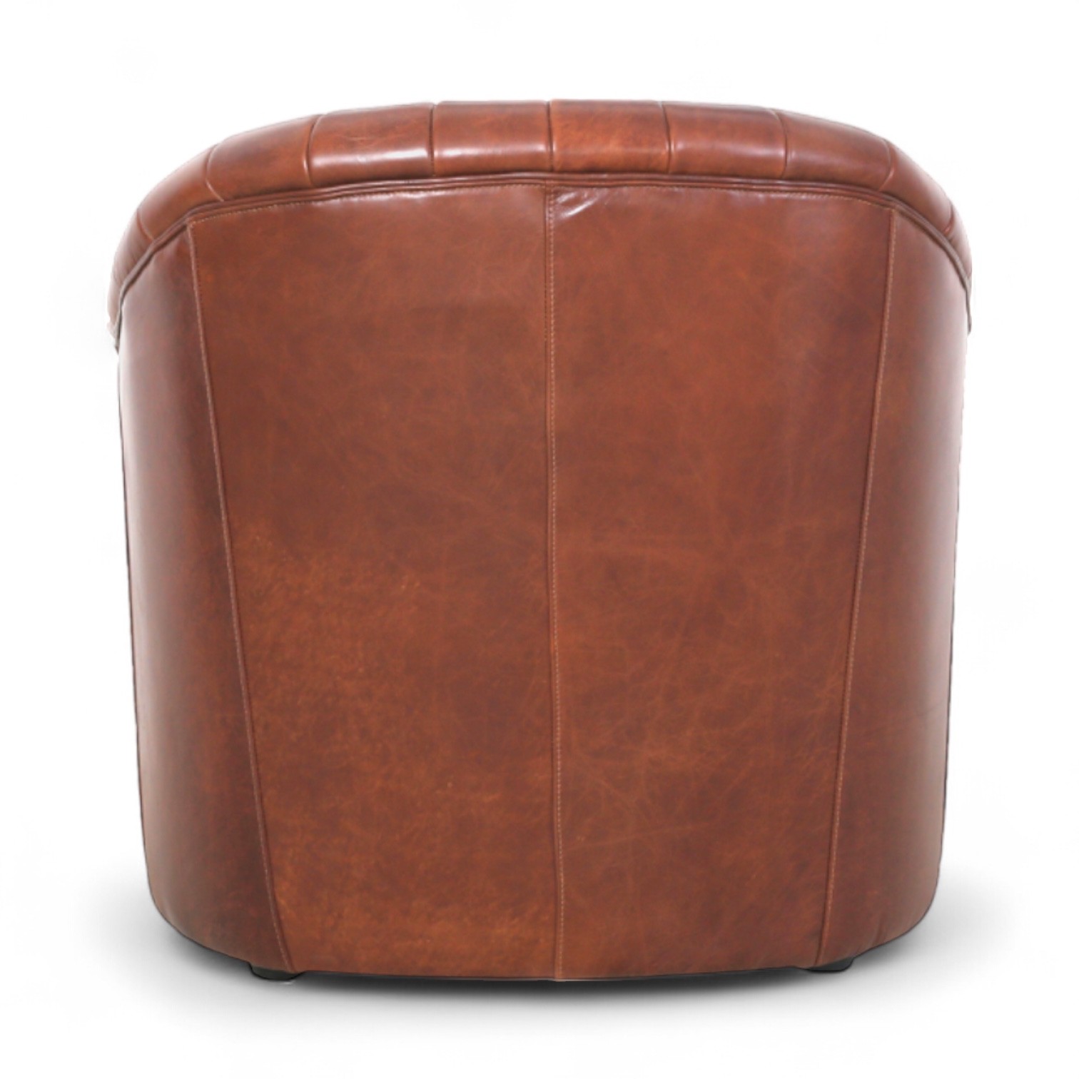 Ce fauteuil en cuir pleine fleur de vachette d'Argentine s'inspire du style emblématique des clubs anglais des années 20. Sa forme arrondie et enveloppante invite à la détente, tout en apportant une touche rétro chic à votre intérieur. Le cuir utilisé, souple et de haute qualité, présente une patine naturelle qui se bonifie avec le temps. Les coutures verticales type "tubulaire" évoquent les fauteuils des années folles, apportant du relief et du caractère à l’ensemble. Le rembourrage généreux assure un confort optimal, même lors de longues périodes d'assise. Les accoudoirs intégrés dans la continuité du dossier offrent un maintien agréable et ergonomique. Ce fauteuil s’intègre parfaitement dans un salon, un bureau ou un coin lecture élégant. Il est idéal pour une décoration vintage, industrielle ou Art déco. Son allure intemporelle en fait une pièce maîtresse de votre mobilier. Chaque fauteuil est unique grâce aux nuances naturelles du cuir pleine fleur.
