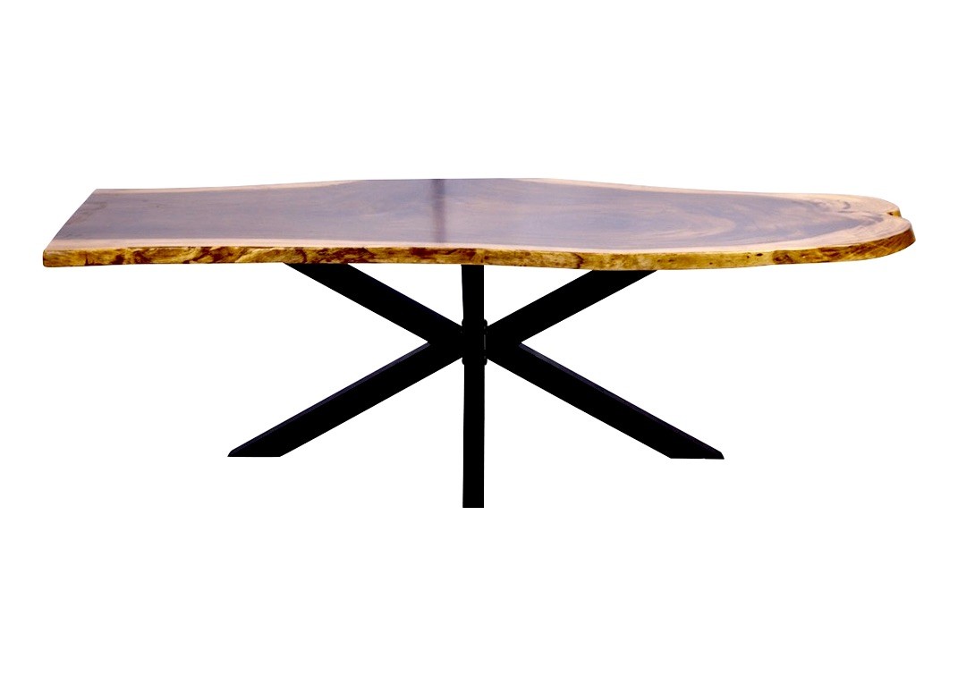 Cette belle table "Azura" de style naturel sera un des éléments centraux de votre intérieur. En bois massif de Suar avec ses noeuds et son veinage tout en nuances naturelles, elle ne manque pas d'opulence ! Ses beaux pieds en métal noir sont très élégants et fonctionnels. Quelques discrètes insertions de résine noire en font une pièce vraiment unique !